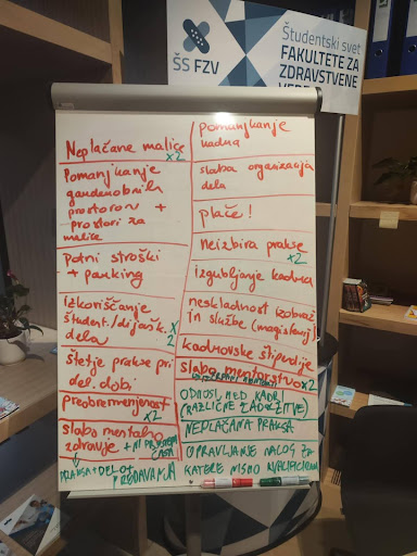 Študenti zdravstvenih smeri se pogosto znajdejo v položaju, kjer so obravnavani kot podaljšek redno zaposlenih delavcev. Po eni strani jih delovno okolje obravnava kot delavce, po drugi strani pa nimajo plačane malice, potnih stroškov ali kakršnekoli druge kompenzacije za delo na obvezni ali izbirni praksi. Občutek manjvrednosti pa izhaja tudi iz negotovosti, saj študenti pogosto ne vedo, na koga se obrniti na delovnem mestu, če naletijo na težave. Čeprav obstajajo pozitivni primeri, kjer tim rad deli svoje znanje, so ti zaradi preobremenjenosti izjema. Posledično mnogi mladi že ob prvem stiku z delovnim okoljem razvijejo odpor do določenih delovnih praks in iščejo alternative: »Zato bom raje probal v kakšnem zdravstvenem domu, pri kakšnem privatniku, ali v tujini. Vsi so mi že povedali, da je tu grozno. Zakaj bi jaz to delal,« je povedal en izmed intervjuvancev. Kljub negativnim izkušnjam obstajajo tudi pozitivni primeri: »Obstaja tisti en stereotip, obstaja en rek, predvsem pri medicinskih sestrah – da medicinske sestre dobesedno požrejo svoje mlade, ne. Ampak jaz, ko sem prišla, tega načeloma nisem opazila.«